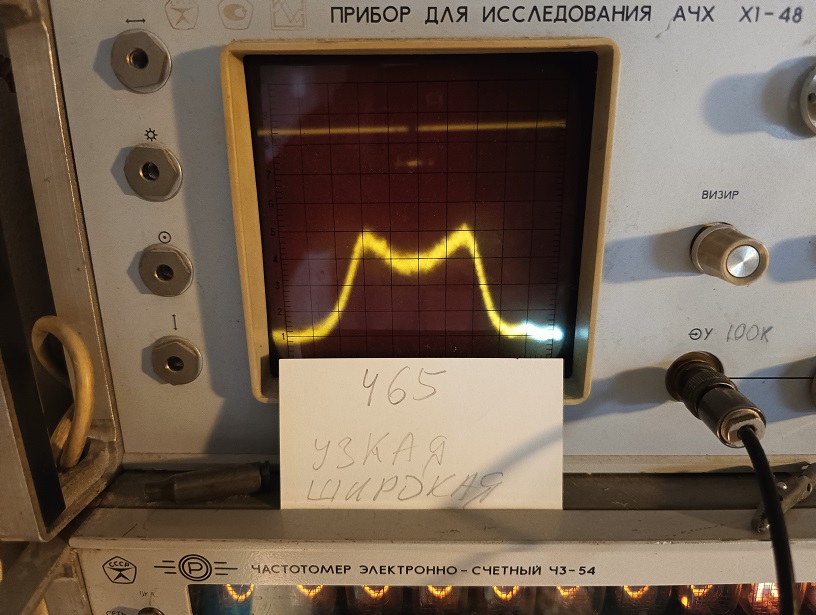 | НАСТРОЙКА ПЧ-АМ Выход Х1-48 к С9 отпаянного от L9. Вход к аноду АМ детектора Д5. настроить узкую АЧХ ПЧ-АМ ТР3, ТР5, ТР7. включит ПОЛОСА подправить широкую АЧХ.