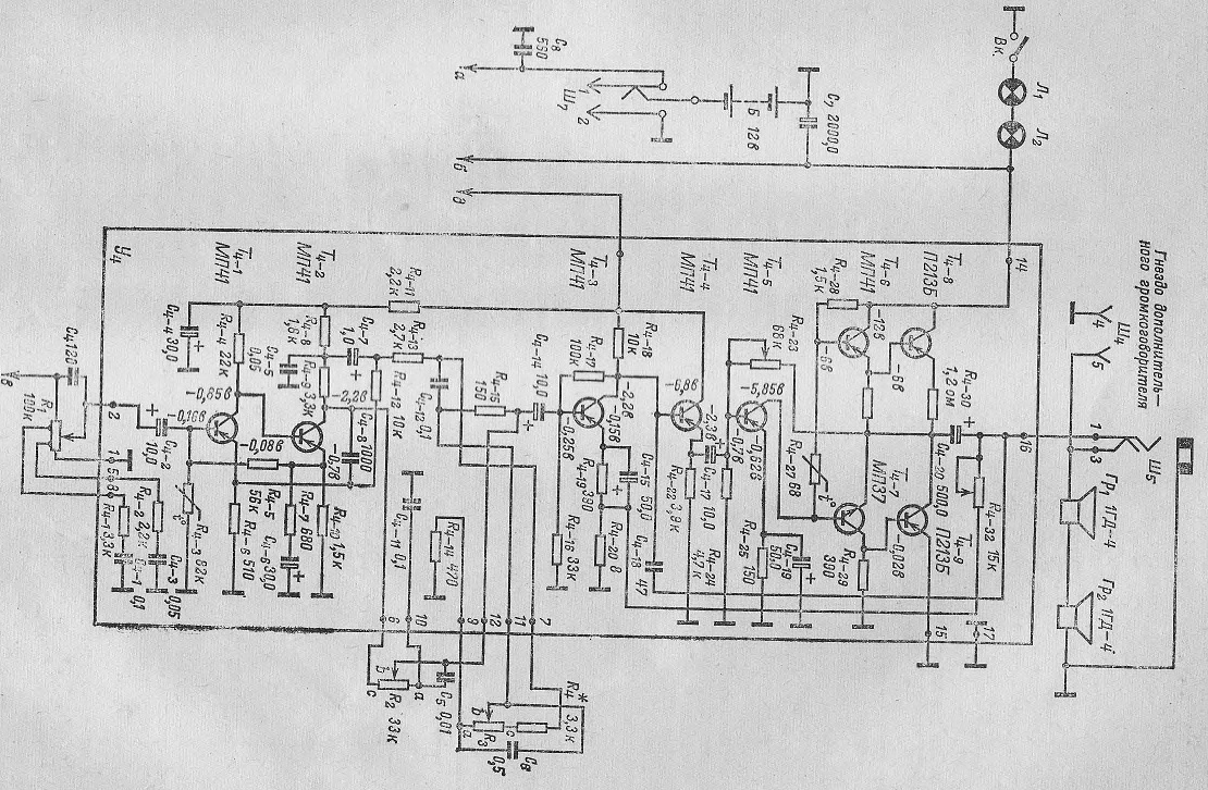 С2=1,0 стоит 5,0 поставил 1,0 С7=1,0 стоит 5,0 вход НЧ на темброблок поставил 1,0 импорт С5=0,05 блокировка ВЧ на корпус поставил 0,047 С7-R13-С12-R15-С13-Т3 средние частоты минуя регулировки С13= тембр НЧ в старых 0,5 мбм в новых 1,0 к50-12 ВЗР и есть совсем исключен.+ поставил К73-11 0,47 250В стоит на контактах УНЧ, сильно уменьшает усиление УНЧ, снижает искажения на НЧ, R14=470 R=33к СП3-4аМ Rвнешний=3,3к со звездочкой выравнивание низких с высокими отсутствует поставил 3,3к к переменному тембра НЧ R15=150 С17=10,0