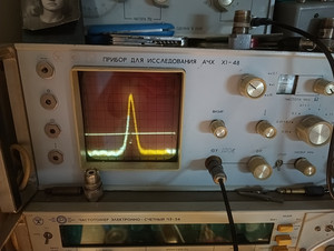 х1-48 выход на антенну вход с анода диода АМ детектора сигнал и выше зеркалка настроил сигнал максимум, зеркалка минимум